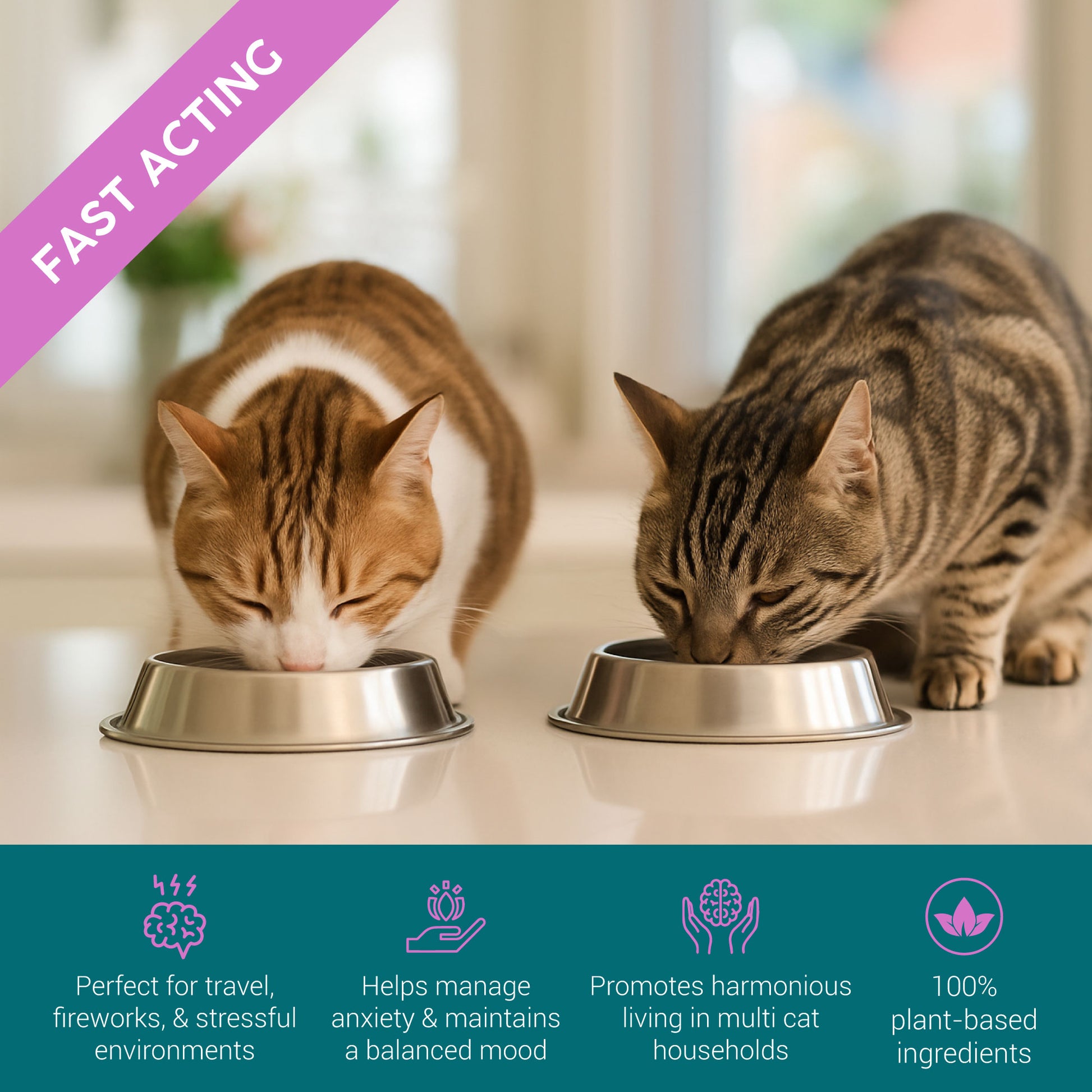 - Reduce Cat Stress & Anxiety – Helps calm cats during travel, vet visits, loud noises, new pets, or changes at home. Supports stress relief for cats, anxious cat relief, and kitten calming without harsh sedatives.