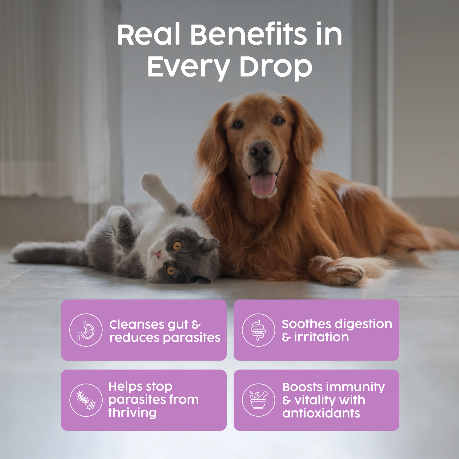 Safe and effective for dogs, cats, ferrets, rabbits, and even poultry β a versatile natural worming option for homes with multiple pets.