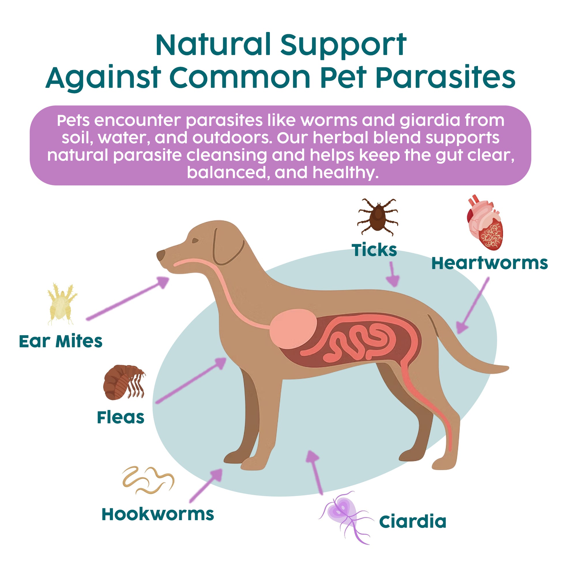 Enriched with aloe vera and wild thyme to calm the digestive system while helping disrupt parasite cycles. Perfect for sensitive stomachs and routine maintenance.